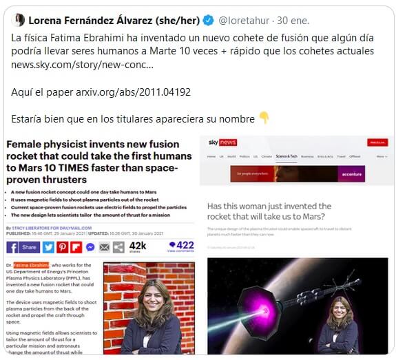 Twuit de Lorena Fernández Álvarez, @loretahur, otra científica que comprende la importancia de las palabras.